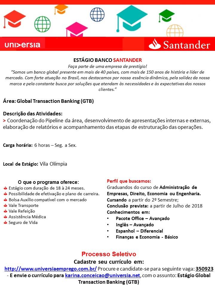 Vagas De Trabalho On Twitter Estagio Banco Santander Envie Cv Para Karina Conceicao Universia Net Com Assunto Estagio Global Transaction Banking Gtb Https T Co Oakkbhvpzr