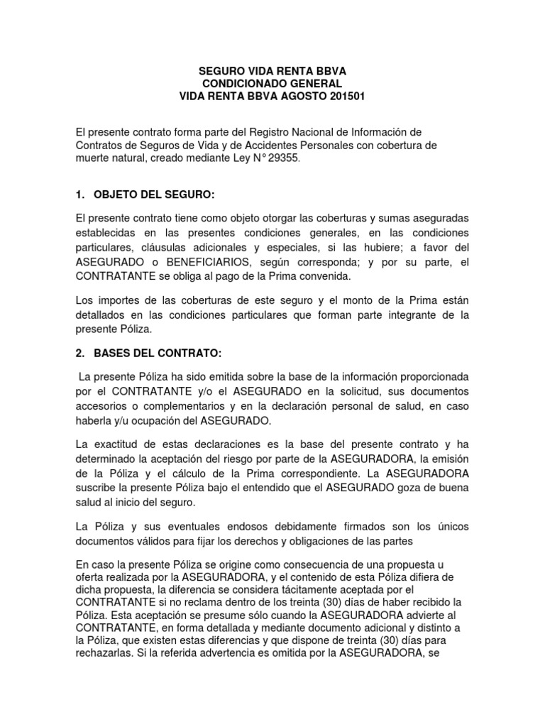 Seguro Vida Renta Bbva Docx Poliza De Seguros Seguro